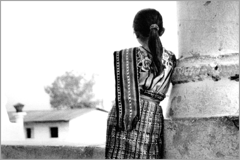 Niña apoyada en la columna